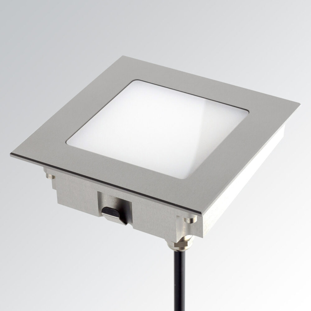 Incasso IP67 a pavimento/parete/soffitto/controsoffitto a luce diffusa, ideale, per l'illuminazione di marciapiedi, vialetti, giardini. Disponibile in 2 versioni con variazione di grandezza e potenza (M, L)